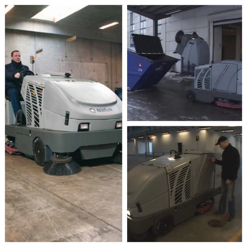 The Nilfisk machines that we use are a complete floor cleaning solution ass they can sweep, scrub and dry all in a single pass or be used for just sweeping or scrubbing depending upon the application.